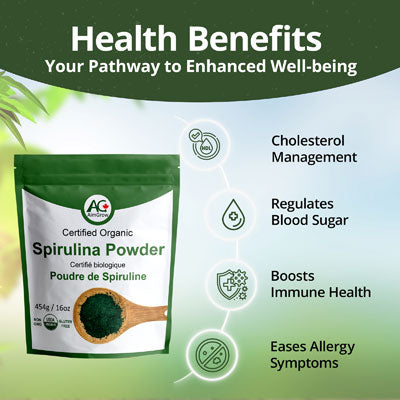 - Supports Digestion and Overall Well-being - Feel your best every day! Like a fibre supplement, it helps promote digestion. Spirulina is a powerhouse of essential nutrients, including vitamins, minerals, and fatty acids, which support eyes, skin, and immune health.
