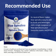 - Versatile Culinary Enhancer - a natural food additive, it brings a vibrant blue hue to your smoothies, yogurt, lattes, and baked goods. Make blue spirulina drinks and other culinary creations that are as visually appealing as they are nutritious.